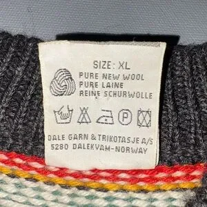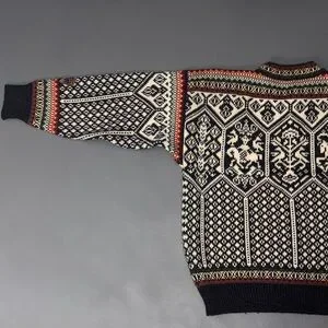 Vintage 1994 Dale of Norway Lillehammer Olympics pure new wool sweater in very good condition. There is one faint stain below the collar as shown in the last photo. Tag size XL.