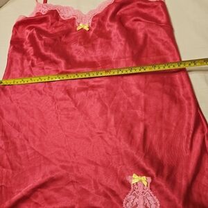 Indulge in comfort and style with this elegant pink chemise. Featuring delicate lace trim and a flattering fit, it's perfect for a cozy night in. The soft fabric ensures a luxurious feel against your skin.