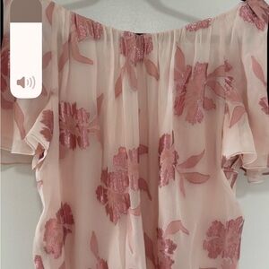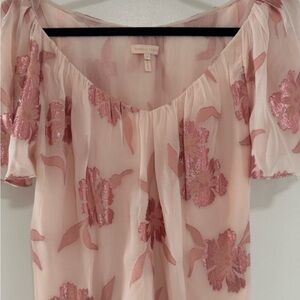 Rebecca Taylor pink blouse. Size Medium. Embrace elegance with this floral off-shoulder top. Perfect for any occasion, its soft pink hue adds a touch of femininity to your wardrobe.