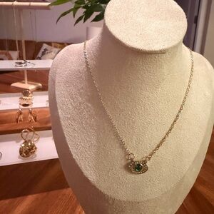 Elegant Gold Emerald Rhinestone Evil Eye Necklace