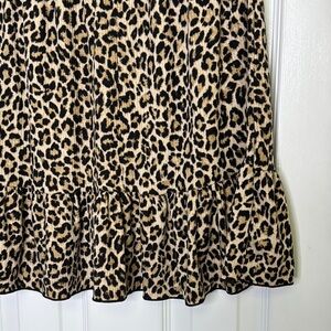 This chic leopard mini skirt is designed for a night out, featuring a playful ruffled hem that adds a touch of flair. The elastic waistband ensures a comfortable fit, while the lightweight fabric allows for graceful movement.