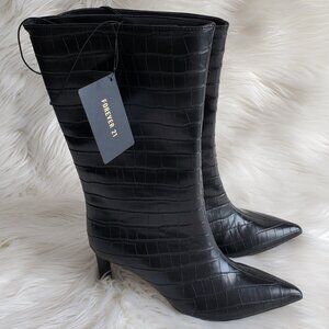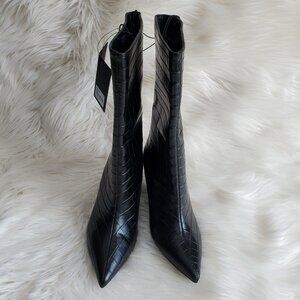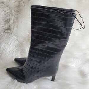 Forever 21 Black Pointed Toe Crocodile Print Slip On Boots SZ 6