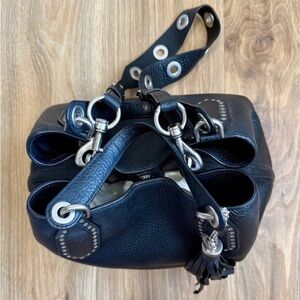 Michael Kors Black Leather Shoulder Bag with Tassel