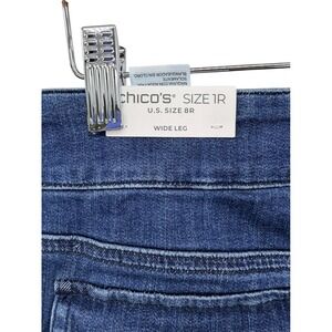 Keywords: Chicos jeans, wide leg denim, ankle jeans, sailor button, pull on pants, high rise, indigo wash, casual style, comfortable fit, everyday wear, weekend outfit, relaxed silhouette, button detail