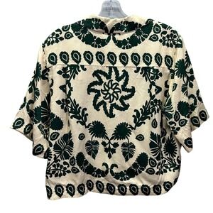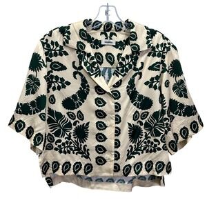 Sandro Paris Cavaliere Ecru Green Floral Print Button Up Shirt Top Size 1 | US 4