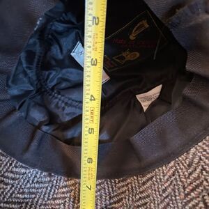 Really nice condition! Great colors! 100% wool. Brown is the main color. No size listed but has some give. It fits my head but is a little too big. Clean home always! No weird smells, no stains, no holes. Looks like it’s never been worn. Really nice substantial hat! Castlebar, made in Ireland.