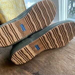 Keds Rifle Paper Company collab hi-tops. I don’t think they are water proof but certainly water-resistant. They do fit large but I loved them so much that I purchased them again a size down.