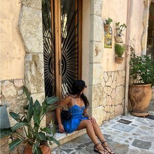 SNYDS. Tahlia Blue Halter Mini Dress