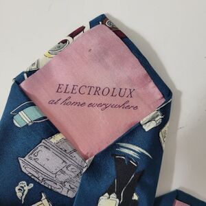 Fantastic Electrolux vintage appliances neck tie. 100% silk. Excellent preloved condition no stains or tears. Made in 1994 celebrating 75 years of household appliances. Features items from throughout the years like the modern microwave and the retro 50s vacuum, first ever refrigerators and electric sewing machines.