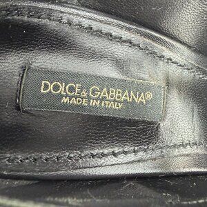 Condition: Excellent Pre‑Owned • Material: leather/textile upper • Heel height approx 3.5+ inches with decorative Baroque motif • Signature DG branding on heel. Includes original Dolce & Gabbana dust bags and box.
