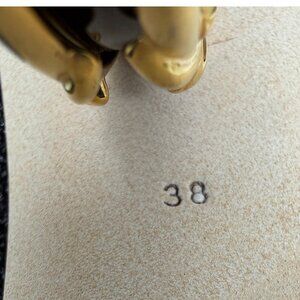 These are pre‑owned in Excellent condition with light sole wear consistent with gentle use. Size 38 EU (fits approx US 7.5‑8) true to size for most. Cushioned leather insole and stable block heel deliver surprisingly wearable all‑day comfort despite the ornamental design.
