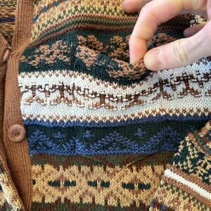Ivy vintage 90s brown and blue button-up cardigan sweater. Fun funky print, collar, button front, cute little chest pocket.