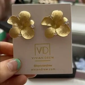 Calling all ears! Want a sleek and Elegant earrings? We’ll look no further than these gold flowers with diamonds accents by Vivian Drew! They feature a little hint of fake diamond! But who can tell?!