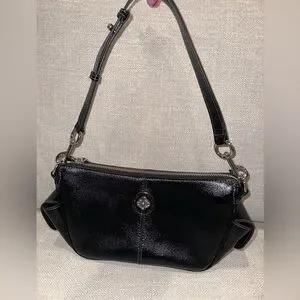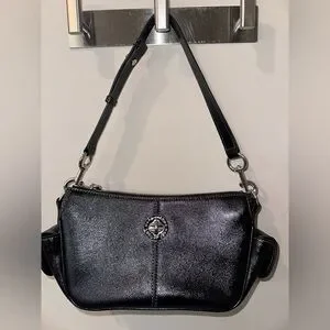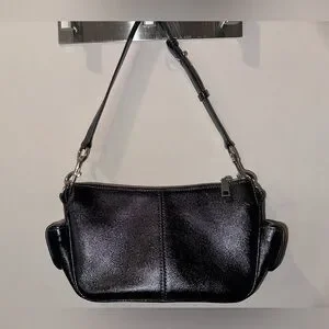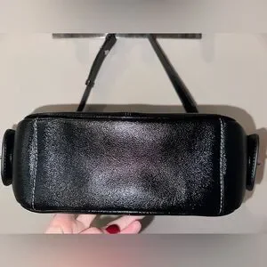 đŤA sleek and sophisticated Marc Jacobs Signet Turnlock Shoulder Bag, crafted in glossy black leather with the brandâs iconic circular signet turnlock hardware in polished silver tone. This timeless silhouette reflects Marc Jacobsâ signature blend of modern minimalism and classic luxury.