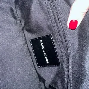 The structured leather exterior is smooth, lustrous, and exceptionally well preserved, showing no scuffs, corner wear, or loss of shape. The interior is spotless and unused-looking, featuring clean black lining, a zip pocket, and the original Marc Jacobs leather logo patch.