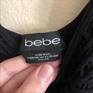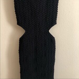 bebe Brand little black dress size small. Dress has cut outs in the side and have a design throughout. Dress is very stretchy and comfortable. No rips, stains, or smells. Please note dress is the exact same fit as the stock photos just with a different pattern on dress.