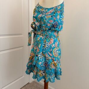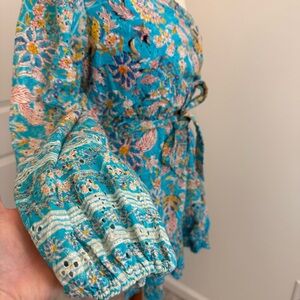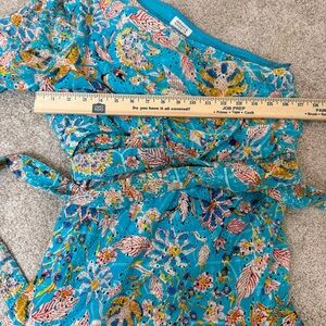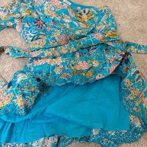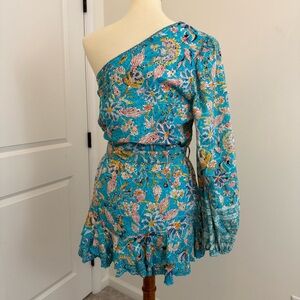 Hemant and Nandita Floral One Shoulder Cotton Eyelet Mini Dress Size Large