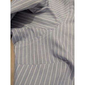 Duluth Trading Wrinklefighter Button-Down Shirt Women's 1X Blue White Pinstripe