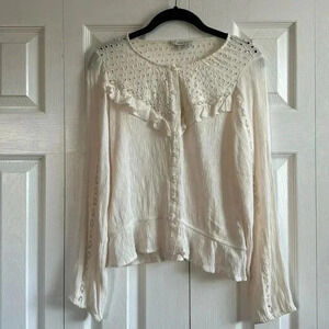American Eagle White Eyelet Lace Ruffle Clip Dot Peasant Button Up Top Medium