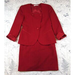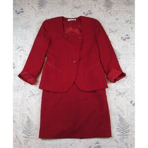 Vtg Christian Dior Women's Red Skirt Suit Skirt and Collarless Blazer Suit Sz 4