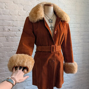 Vintage Leather Penny Lane Jacket Faux Fur Furry 70s Afghan Tapestry Trench Coat