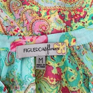 Figueroa & Flower Multicolor Paisley Sheer 3/4 Sleeve Blouse