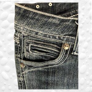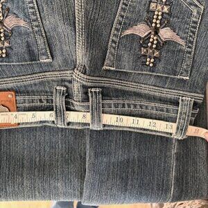 Step into style with these stunning vintage SUKO flared jeans. Featuring great hardware, beautiful beading, studs, and bling on the back pockets, these jeans are a true statement piece. Perfect for adding a touch of vintage charm and flair to any outfit.