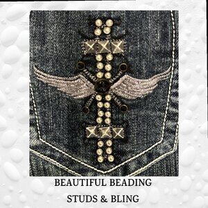 Beautiful beading, studs, and bling on back pockets