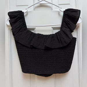 Lulu's Spring it Back Two-Piece Romper Set. Size small in black. Bottoms are flowy shorts with pockets and a lining with an elastic waist, top is stretchy material with ruffle detail. Very flattering. This was inky worn once. No longer available from Lulu’s website. In excellent condition from clean smoke-free home. Comment with any questions! Always open to offers!