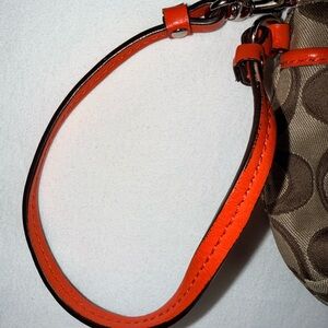 π Coach Signature Wristlet β Khaki with Red Patent Trim