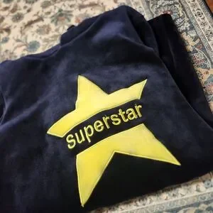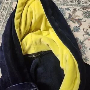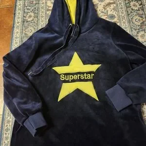 Stay cozy and stylish with the navy blue and yellow velvet hoodie sweater. Perfect for casual outings Beautiful blue velvet very thick sweater dress..check measurements please.100% Cotton