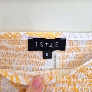 🍁1.State Yellow & White Paisley Puff Sleeve Smocked Dress – Size Small