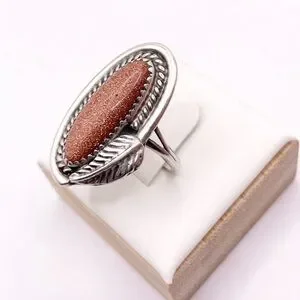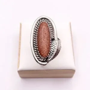 Size 6.5 Goldstone 925 sterling silver ring. Native American made. No stamp does test sterling.