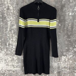 Arizona Jean Co Size XL Mock Neck Striped 1/4 Zip Sweater Dress Black Yellow