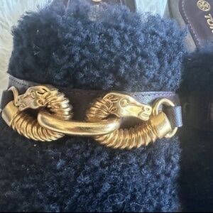 Tory Burch Black Jessa Shearling Clogs Horse Head Hardware mules Size 6 shoes