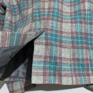 TALBOTS Wool Blend Grey, Coral & Turquoise Plaid Shetland Blazer