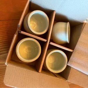 Elegant set of cream ceramic cups. Perfect for any occasion. Gift from Korea. Never used. Seafoam green color
