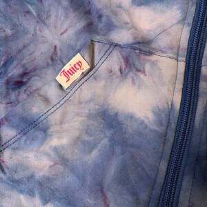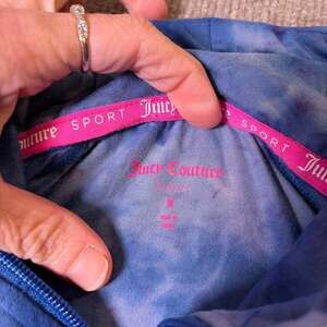 Juicy Couture Sport Tie-Dye Jacket, Women's Full Zip-Up — a stylish piece perfect for active wear or casual outings. This jacket features convenient pockets and a vibrant blue tie-dye pattern, making it a standout item. Made for comfort and style. Excellent pre-owned condition, no visible flaws.