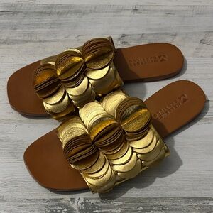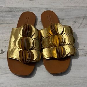 MERCEDES CASTILLO Dalphia Slide Gold Sandals Size 7