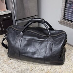 Sleek and stylish leather duffel. Perfect for travel. Durable and spacious design.