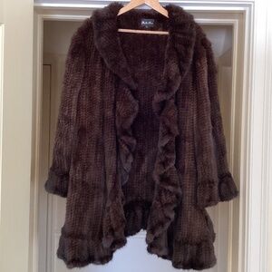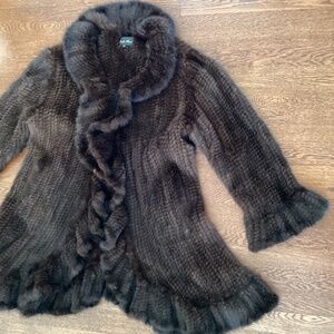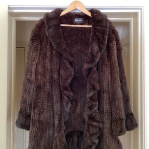 Stay warm and stylish with this elegant modern knitted mink coat from Belle Fare. Perfect for casual, buisness or formal wear.