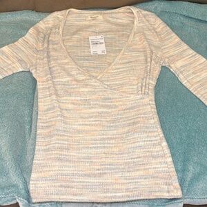 Madewell Space Dye Faux Wrap Top Color Soft Rainbow Size Medium NEW With Tags