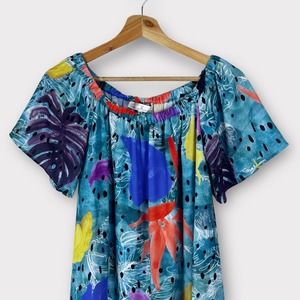 Anthropologie Christina Economou Pacific Off the Shoulder Midi Shift Dress XS