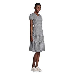 Land’s End Dress Short sleeve tiered dress Baltic teal palm knit pockets Med T