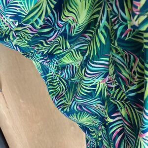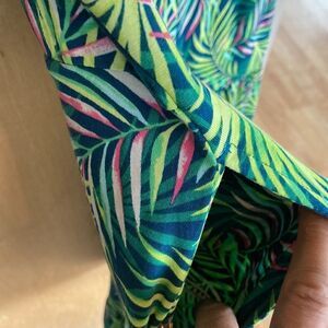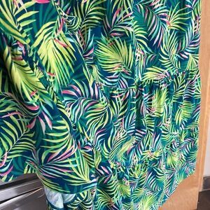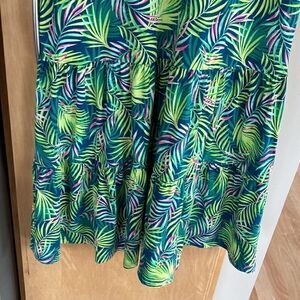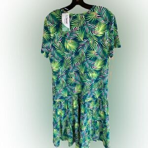 New Land’s End Short sleeve tiered dress Baltic teal palm print ruffle bottom Tencel knit dress Medium Tall, fit’s size 10 to 12
