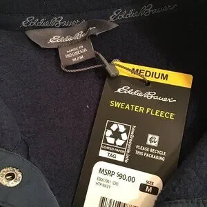Eddie Bauer Sweater Fleece Men's Medium Pullover Heather Navy- NEW With Tags