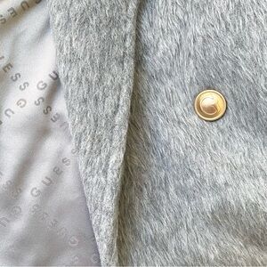 Stunning GUESS longline coat in light stone heather grey. The perfect mix of cozy and polished. Soft wool-blend with subtle shag texture, that’s editorial yet timeless. Double-breasted with gold tone buttons, notched collar, sleek side pockets and full satin lining. NWT, pristine, no flaws noted. Instantly elevates jeans, knits or a night-out look.