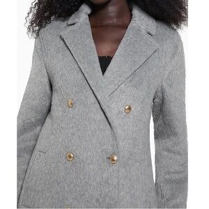 GUESS NWT Textured Wool Blend Double Breasted Coat Light Stone Heather Size S