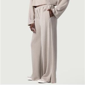 Honor The Gift textured jogger pants in a stone beige colorway, crafted in a soft jacquard fabric with a subtle geometric texture. Designed with a relaxed fit, elastic waistband, and adjustable drawstring for everyday comfort. Finished with an embroidered Honor The Gift logo detail. Elevated lounge and streetwear essential.
