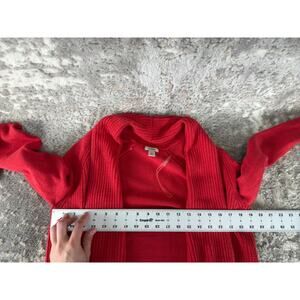LL Bean Petites Size S Open Front Knit Cardigan Sweater Red Long Sleeve Outdoor